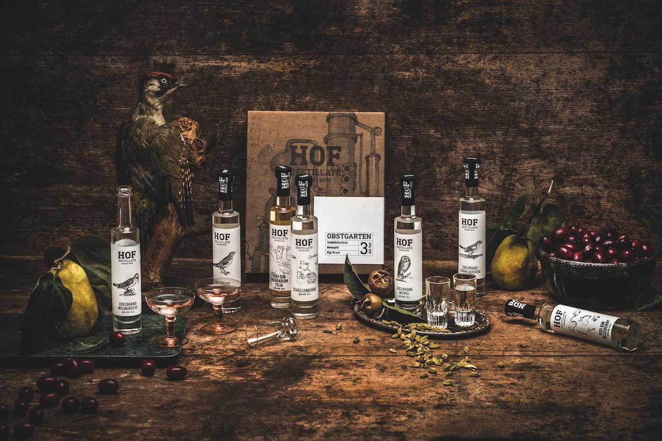 Degustation: Wacholder, Koriander, Melisse, Lemongras, Eisenkraut, Waldmeister, Mädesüss, Orangeblüten, Hagebutte, Orangenschalen, Lavendelblüten, Kamillenblüten, Holunderblüten, Zitronenschale, Kirschen
