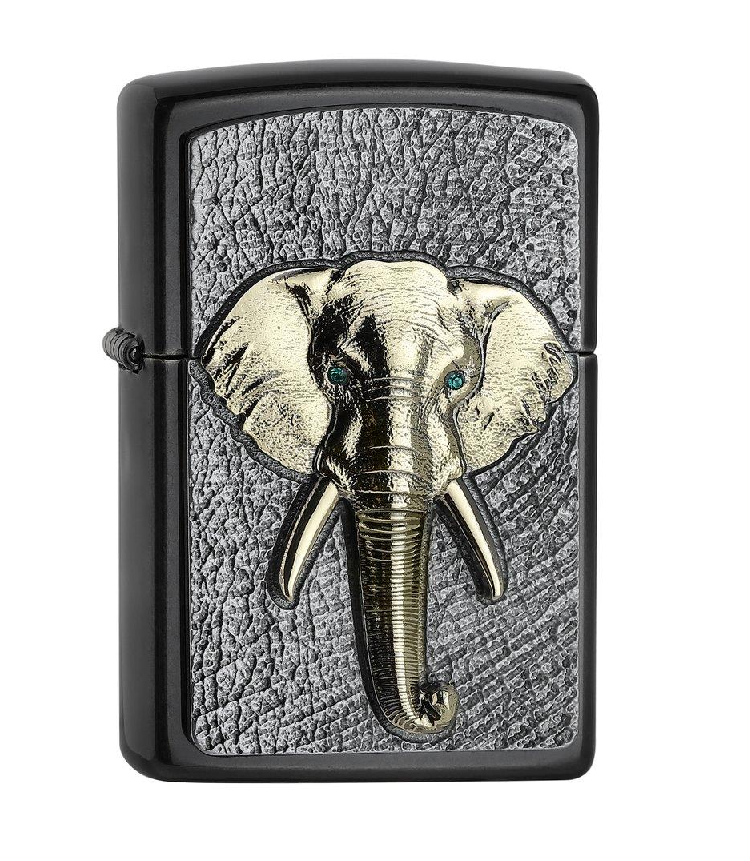 Trotz Dickhäuter leicht genug für den Transport in der Hosentasche. Feuerzeug mit Elefanten Emblem und Kristall Elemente als Augen.