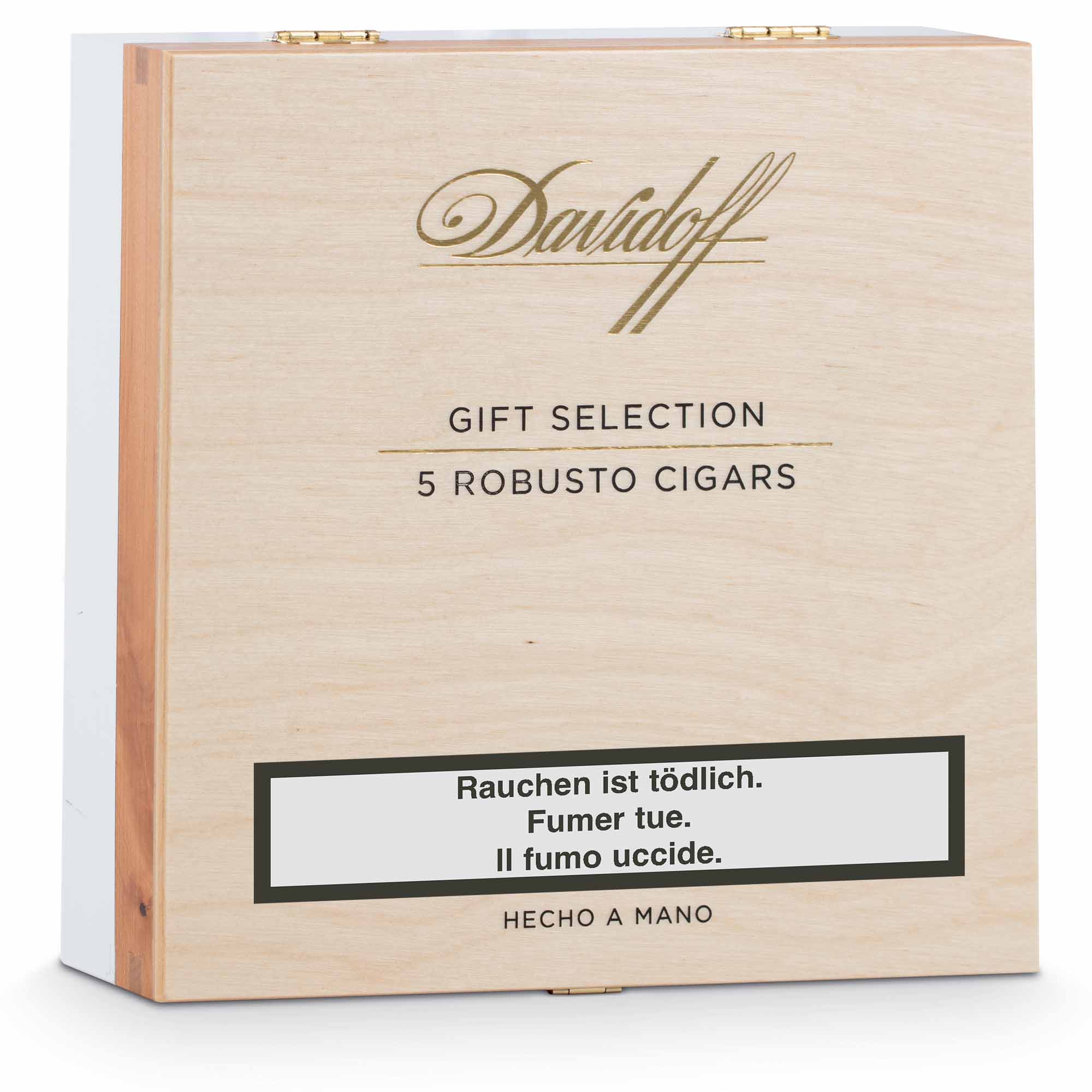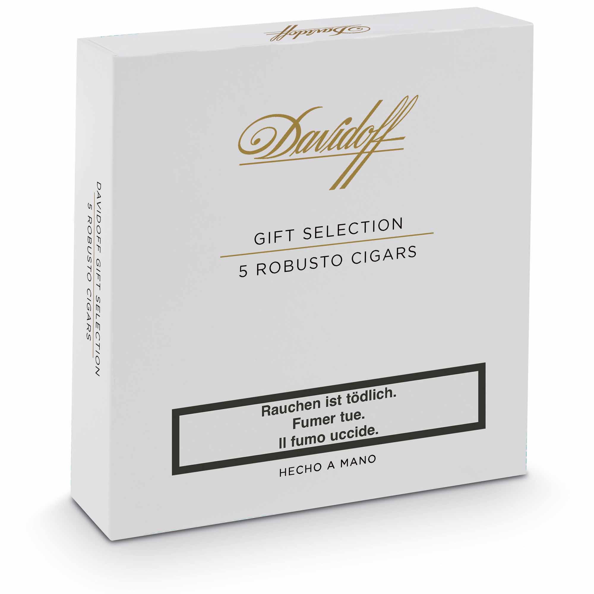Die Davidoff Robusto Selection bietet eine spannende Reise durch die beliebtesten fünf Davidoff Zigarren im Robusto Format. Die Davidoff Robusto Selection kommt in einer wunderschönen Holzkiste daher. Im Deckel sind alle Informationen zur jeweiligen Zigarre abgebildet.
