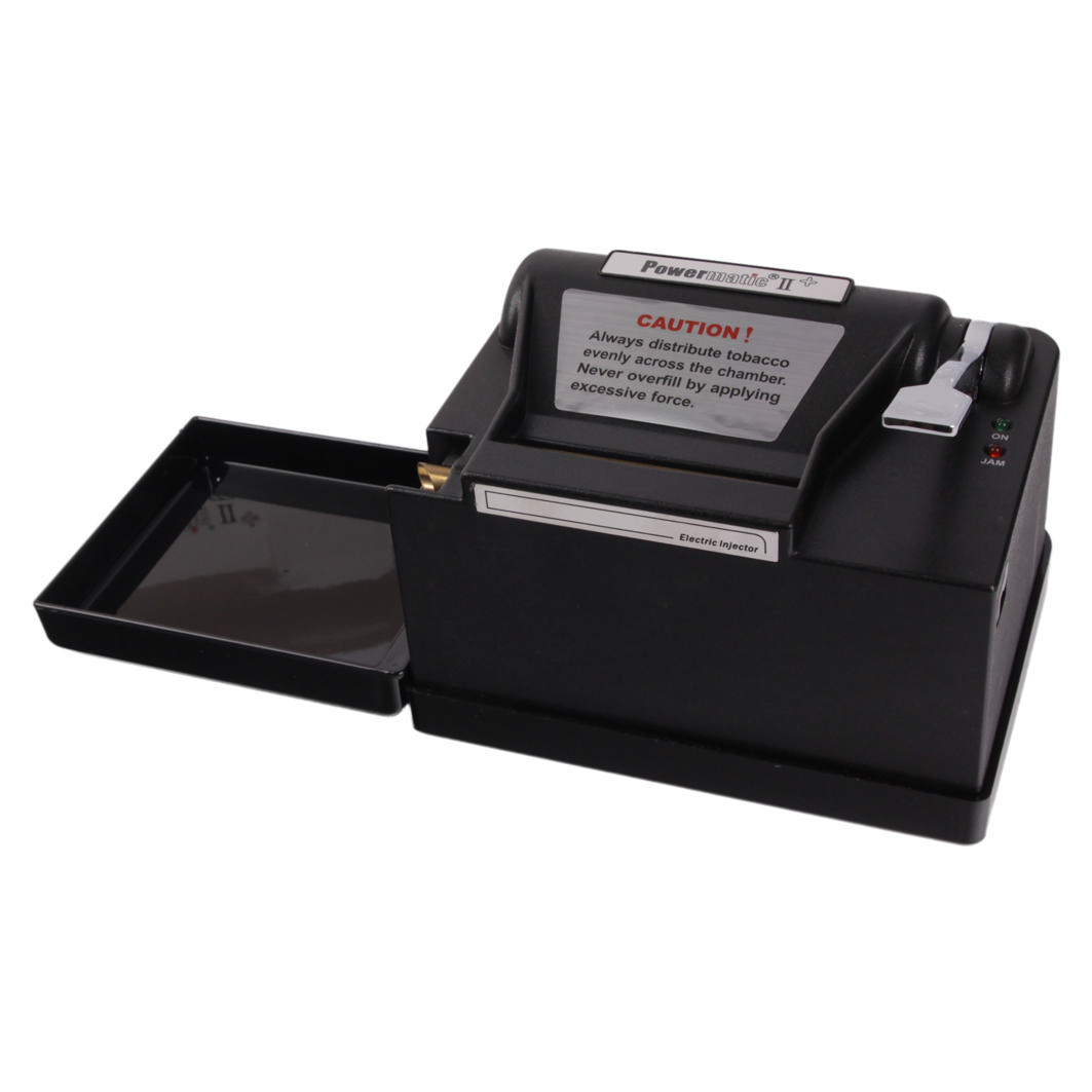 Die Powermatic 2+ Ist im Moment wohl die beste halbautomatische Zigarettenstopfmaschine. Innerhalb weniger Minuten ist eine komplette Schachtel Zigaretten gestopft, ohne dass man befürchten muss, dass der Tabak, wie bei den Spiralmaschinen, verklumpt und die ganz Glut abfällt. Der Mechanismus ist den Hebelstopfmaschinen ähnlich, nur mit dem großen Vorteil, dass die Zigarettenhülse mit "Motorunterstützung" gefüllt wird und man somit keine Würgerei mit der Maschine hat. Sie rutscht nicht auf der Tischplatte herum und ein Verkeilen des Füllmechanismus gibt es auch nicht.