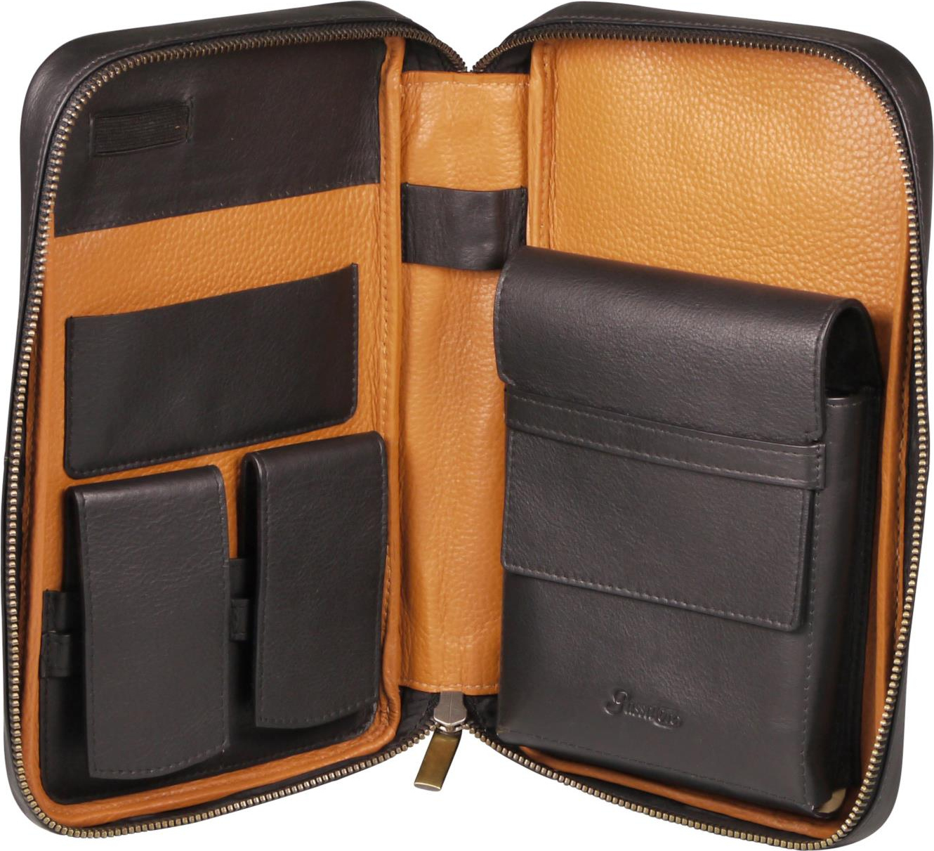 Passatore Reiseetui aus Echtleder in schwarz für 5 Zigarren. Ausserdem bietet es Platz für Feuerzeug und Schneider, somit ist alles an seinem Platz.