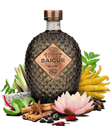 Die Idee hierzu entwickelten Jochem Lisser und Florian Draaisma im Jahr 2018. Da die beiden authentisch vietnamesische Botanicals in den Gin packen wollten, bereisten sie das ganze Land - von den Strassenmärkten in den urbanen Zentren bis hin zu den abgelegenen Bergregionen. Zwei Jahre lang dauerte es, bis die finale Zusammenstellung mit zwölf regionaltypischen sowie vier klassischen Botanicals gefunden war. Für die 24-stündige Mazeration, die Destillation und die Dampfinfusion der aromatischen Pflanzenstoffe in der District 9 Distillery hatte man extra eine handgefertigte Carterhead-Kupferdestille aus Europa einführen lassen. Stolz führt das Team von Saigon Baigur die Botanical-Liste auf: Hierzu gehören mazedonischer Wacholder, Koriandersamen, Angelikawurzel, Süssholzwurzel, Fenchelsamen, Buddhas Hand, Lotusblüten, Saigon-Zimt, grüner Kardamom, schwarzer Kardamom, Zitronengras, Zitronenschalen, Drachenfrucht, Sternanis, Bird's Eye Chili und Phu Quoc Pfefferkörner. Um die Besonderheit des von Hand gefertigten Gins herauszustellen, suchten Jochem und Florian zudem nach einer ganz speziellen Flasche. Den Entwurf hierzu - inspiriert von einem Drachenei aus der vietnamesischen Mythologie - lieferte der niederländische Designer Pim Tiemessen.