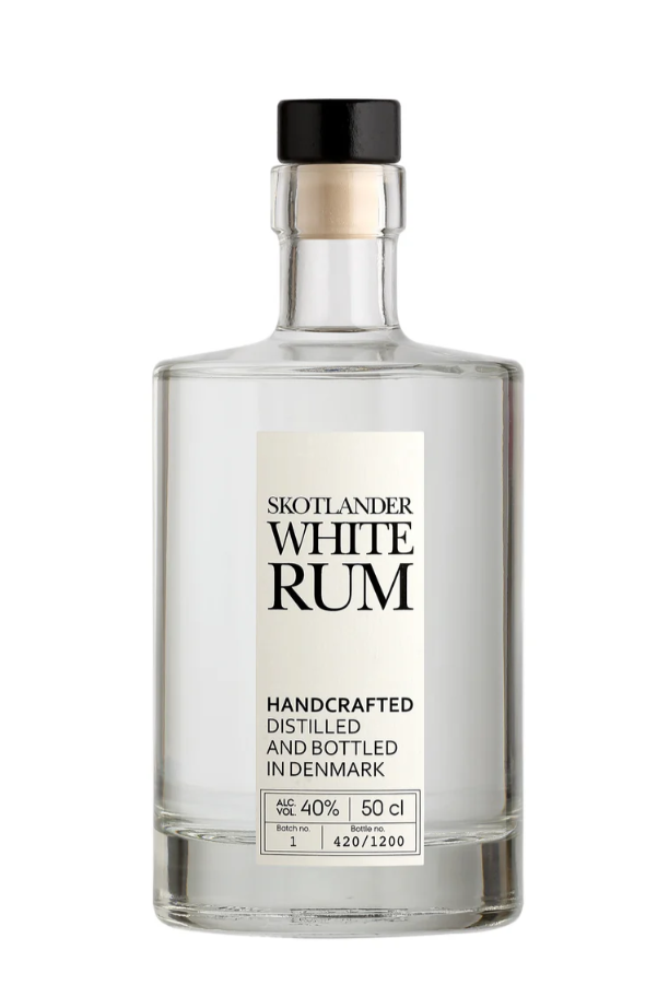 Der klare Skotlander White Rum wurde gemeinsam mit dem braunen Cask Rum und dem ebenfalls farblosen Agricole Rum (aus frischem Zuckerrohrsaft statt aus Melasse) auf den Markt gebracht und hat endlich auch hierzulande Einzug gehalten. Charakteristisch für den hochwertigen Skotlander White Rum ist, dass er nicht etwa auf einer Karibikinsel gebrannt wird, sondern dass jeder Arbeitsschritt von der Destillation bis hin zur Abfüllung in Dänemark selbst erfolgt. Die Melasse hierfür wird aus Brasilien bezogen. Der weiße Rum der Marke Skotlander (die nichts mit Schottland zu tun hat) entsteht in liebevoller Handarbeit. Gebrannt hat man den Rum in einem pot still und verdünnt mit reinem Wasser aus einer Quelle in Jütland.